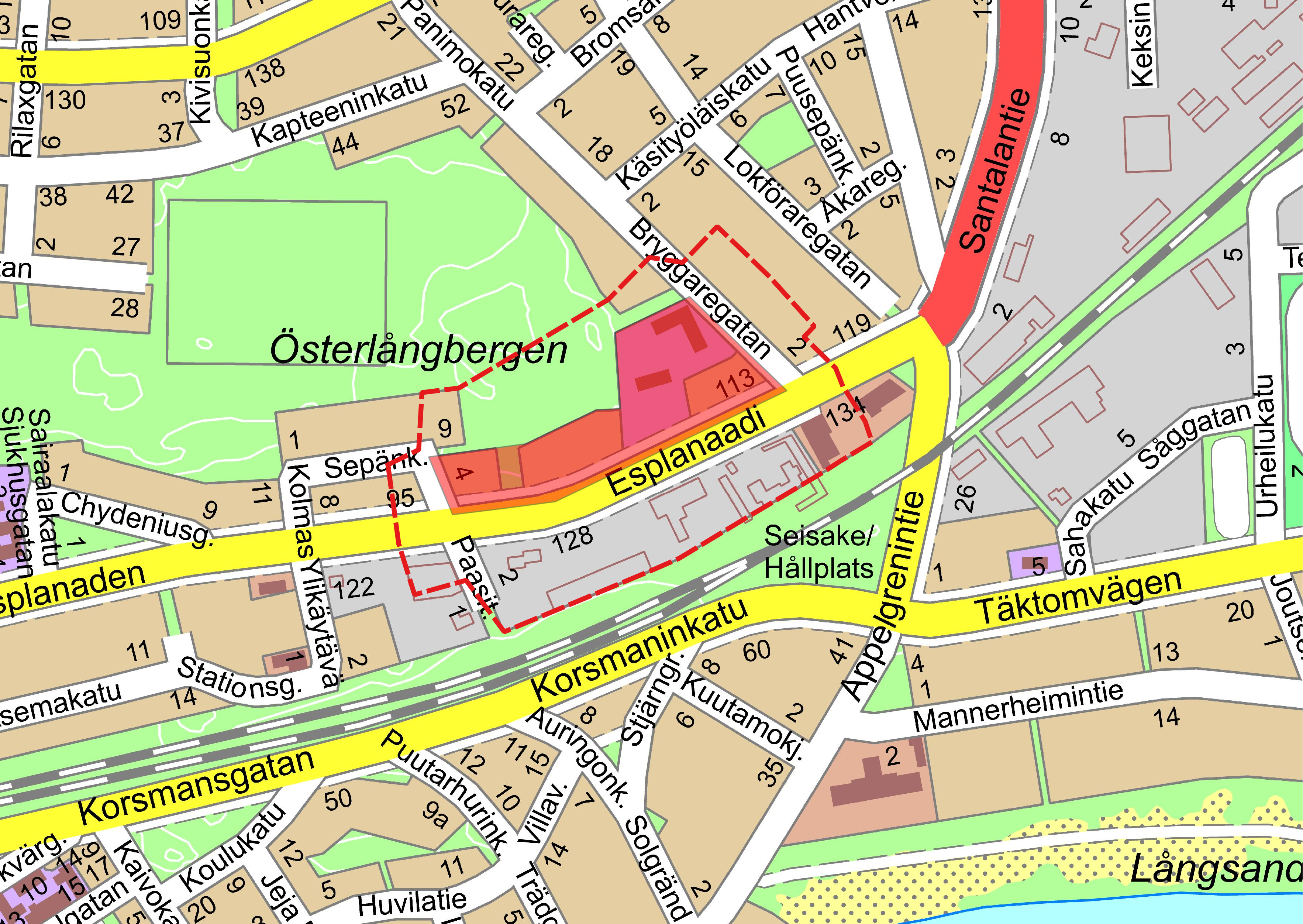Planeringsområdet befinner sig i fjärde stadsdelen och gränsar sig till Österlångbergens område. I söder avgränsas området av Esplanaden, i öster av Bryggaregatan, i norr av parkområde och i väster av Klippvägen. Området omfattar gatuområden, kvarter 407 och 409 samt parkområden mellan dem. Områdets areal är cirka 2,4 ha.